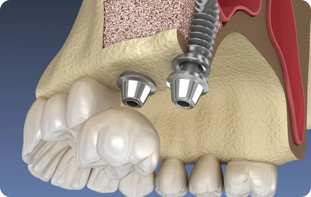 Dans certains cas, une pose simultanée est possible. Cette décision repose sur l’évaluation de la hauteur osseuse et de la stabilité obtenue.